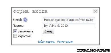 1. Создайте папку ajax на своем сайте и положите в нее b.png, border.png, close.gif, buttons.gif, top.png, ajax.css из архива! 2. На всех страницах сайта, где есть ajax окна после </head> вставьте: